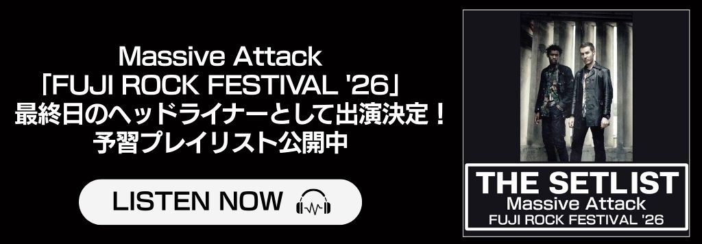 WHAT'S NEW 2026.02.20 TOPICS フジロック初日のヘッドライナーに決定したマッシヴ・アタックのライブ予習用セットリストが公開! 2020.10.07 MEDIA - TV マッシヴ・アタックが発表した話題の“ビジュアルEP”=『Eutopia』の日本語バージョンが完成!今夜放送のスペースシャワーTV『ヨルジュウ』にて世界最速オンエア! MORE