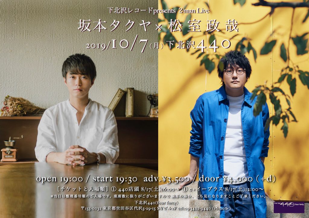 10月7日(月) 下北沢レコードpresents 2man Live「坂本タクヤ × 松室政哉」