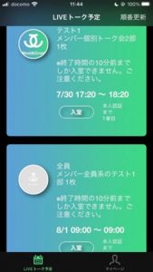 (3)アプリの「LIVEトーク予定」に当選された「全ての予約枠」が表示されていることを確認ください。※本人認証の順番は自動で割り振られます。