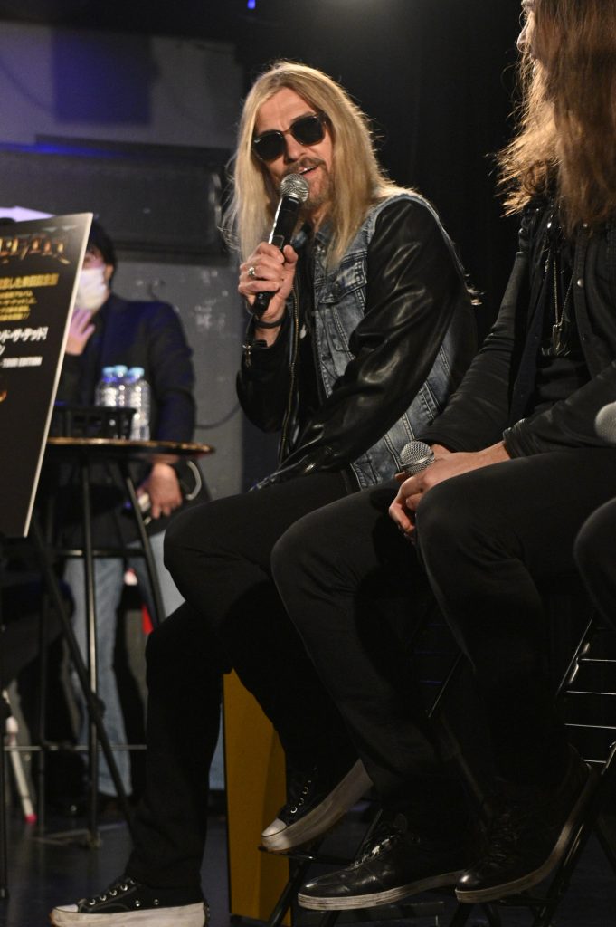 デイヴは明日(27日)に迫った武道館公演について聞かれると「当然今興奮している。明日は自分たちにとっても歴史を作る1日になる。日本の皆さんと歴史を作る。その様を世界中の人が目撃することになるので、是非日本の観客がどれだけ盛り上がって、どれだけヘッドバンキングできるのかったいうのを世界に目撃させよう」と気持ちを述べた(*武道館公演は日本だけではなく、世界中で生配信される)。