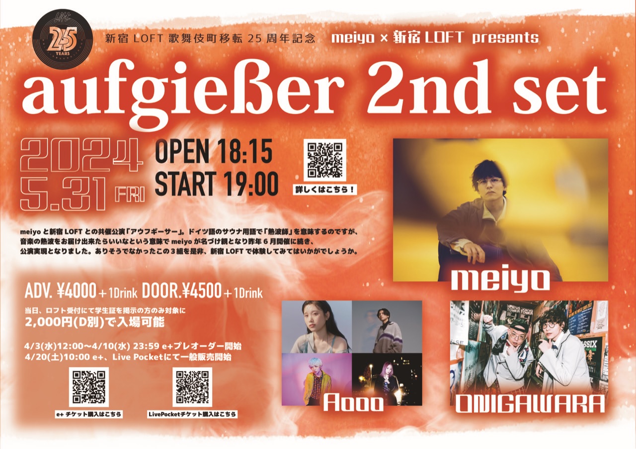 5/31(金)新宿LOFT歌舞伎町移転25周年記念 meiyo×新宿LOFT presents「aufgießer 2nd set」