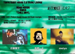 Tokyo Guest House Oji Music Lounge×近藤康平共同3days企画「Chill day1」にmeiyoの出演が決定!