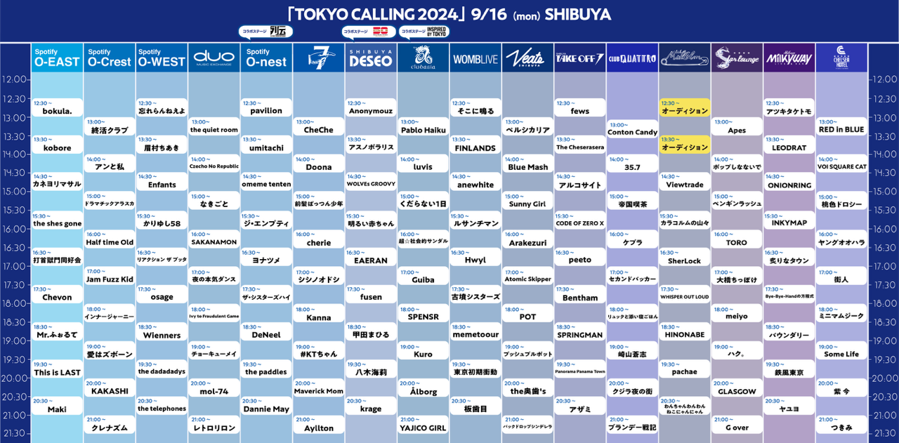 TOKYO CALLING 2024のタイムテーブル解禁!