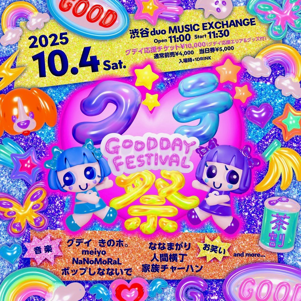 グデイ主催【グデ祭2025】にmeiyo出演決定! 2025.09.16 LIVE 2025年10月4日(土) 開場11:00/開演11:30予定 @ 渋谷duo MUSIC EXCHANGE 販売期間 2025/09/15 21:00 〜 https://t-dv.com/gday2025