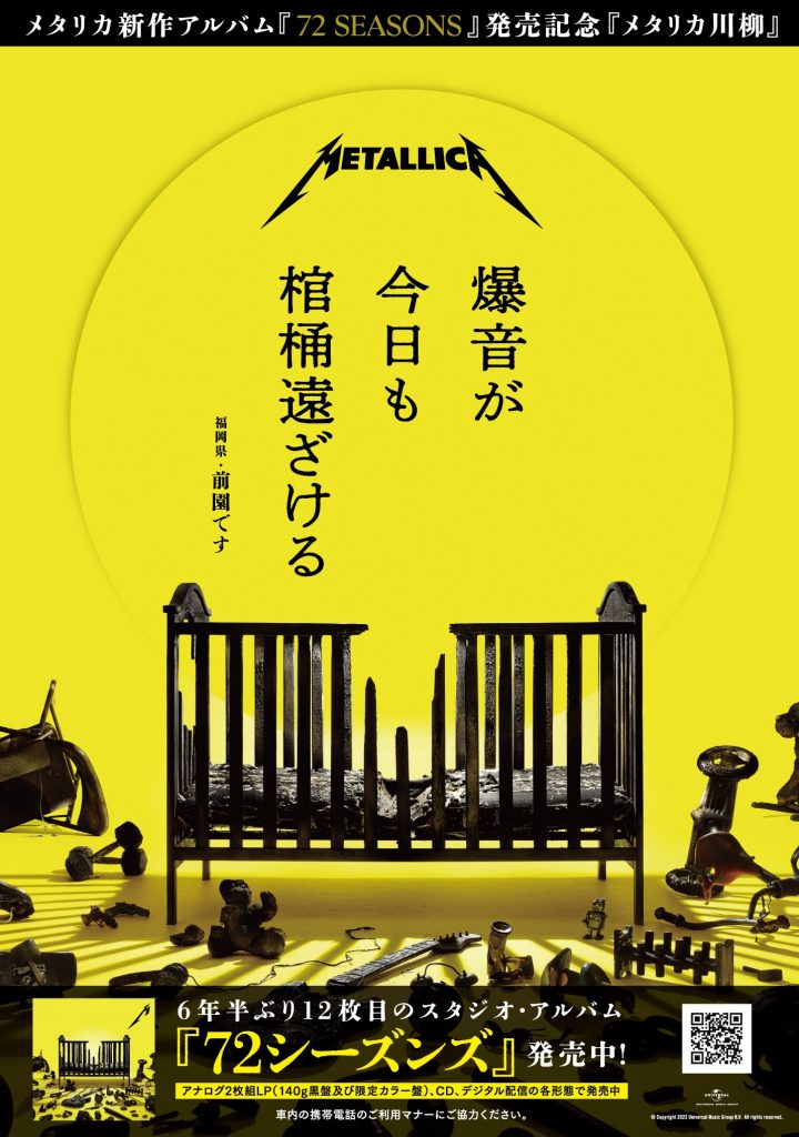 「メタリカ賞」の4作品は、1986年に行われたメタリカの初来日公演が開催された全国4か所の会場近隣駅(JR原宿駅、JR中野駅、大阪メトロ肥後橋駅、名古屋地下鉄鶴舞駅)にその川柳を印刷したポスターが掲出されます。