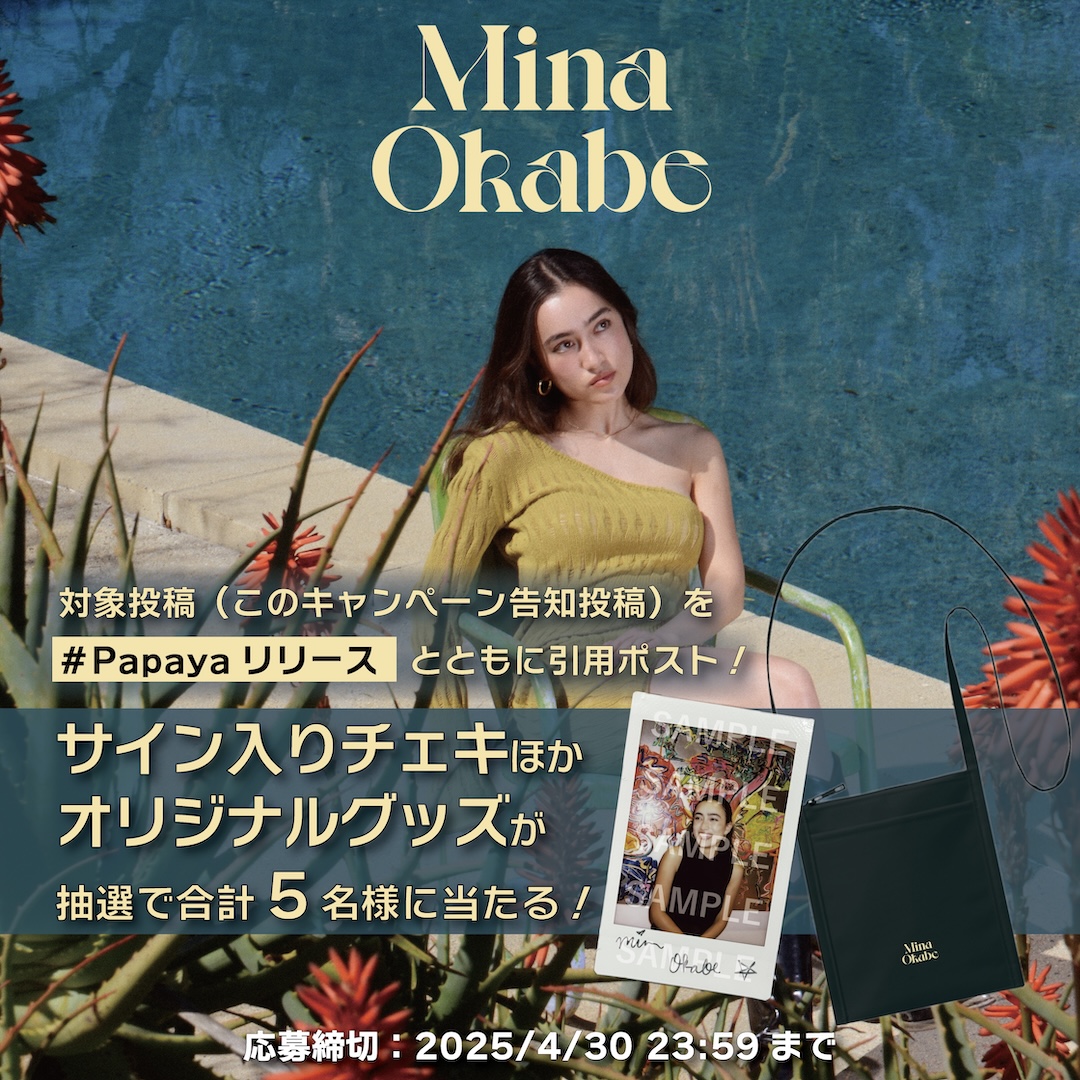 WHAT'S NEW 2025.11.14 LIVE 11月24日(月・祝)に大阪で行われる IN THE PARK イベントのミイナ・オカベの出演時間が決定! 2025.09.24 LIVE ミイナ・オカベが11月24日(月・祝)に大阪で行われるTASOGARE IN THE PARKイベントに出演決定! 2025.04.28 MEDIA - WEB ミイナ・オカベの最新インタビューが掲載! MORE
