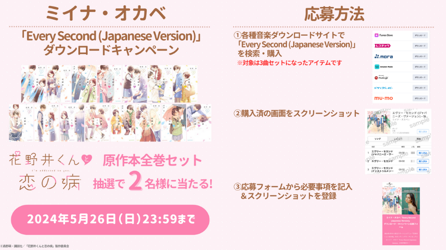 こちらの楽曲(3曲セットのアイテム)をダウンロードしていただいた方の中から抽選で2名様に『花野井くんと恋の病』の原作本全巻セットをプレゼント