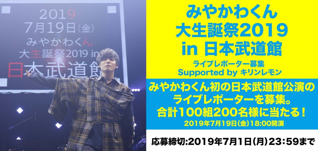 みやかわくん 大生誕祭2019 in 日本武道館 ライブレポーター募集 Supported by キリンレモン キャンペーン受付スタート!