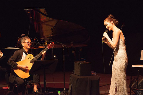 会場は香港アートセンター内のSHOUSON THEATRE。400席強の会場は地元のファンで埋め尽くされ、アルバムのプロデューサーであるギタリストの伊藤ゴローも日本から参加。アルバムの曲に加えて、映画『シェイプ・オブ・ウォーター』から「ユー・ネヴァー・ノウ」やチャーリー・チャップリンの「スマイル」など、多彩な選曲で美しい歌声を披露し観客を酔わせました。アンコール後も拍手と歓声が鳴りやまず、急遽予定になかったスタンダードナンバー「ルート66」を演奏。最後には会場全体でスタンディングオベーションが起こりました。