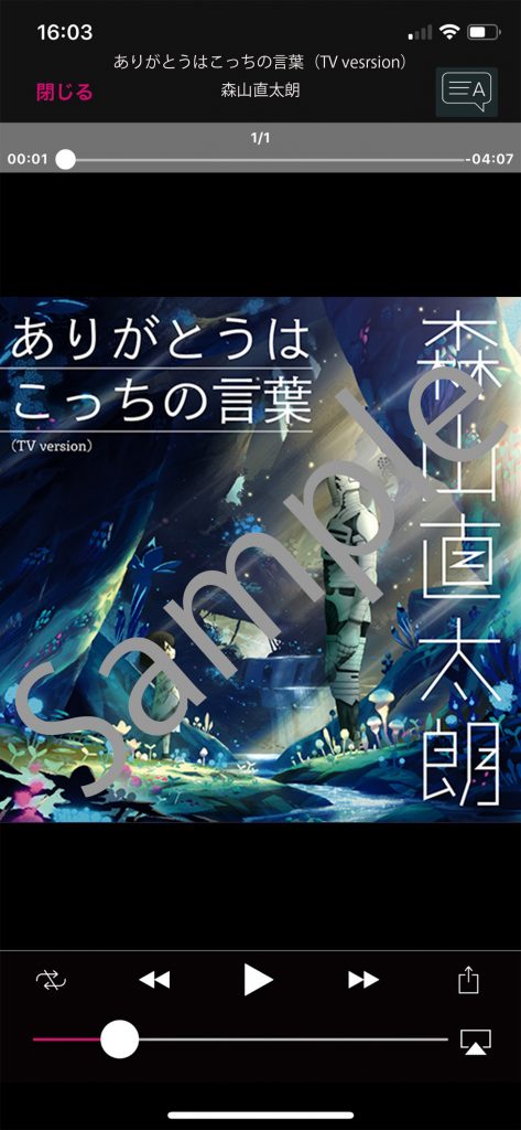 レコチョク アプリ(Androidの場合)、レコチョクplus+プレイヤー(iPhoneの場合)での再生画面スクリーンショット