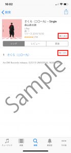 iTunes:以下赤枠内が「購入済み」又は「再生」となっているスクリーンショット