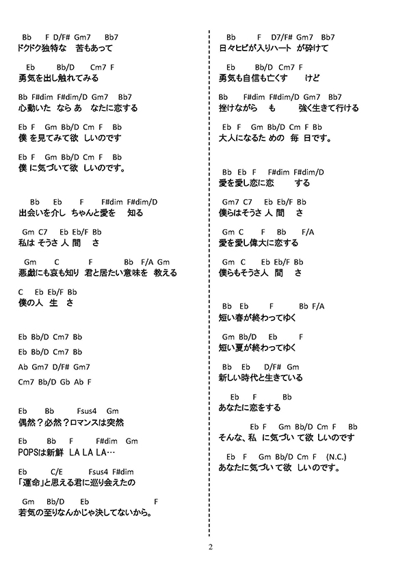 ロマンチシズム コード譜面ページ