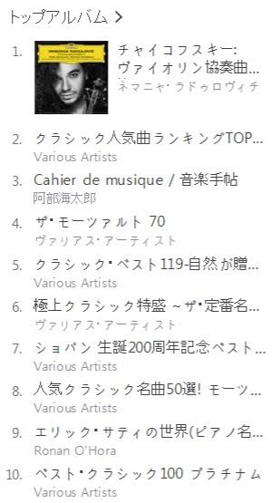 本日配信開始!iTunesクラシック・チャート1位 2017.09.22 TOPICS 本日配信開始!ネマニャ・ラドゥロヴィチ『チャイコフスキー:ヴァイオリン協奏曲、他』がiTunesクラシック・チャート1位。