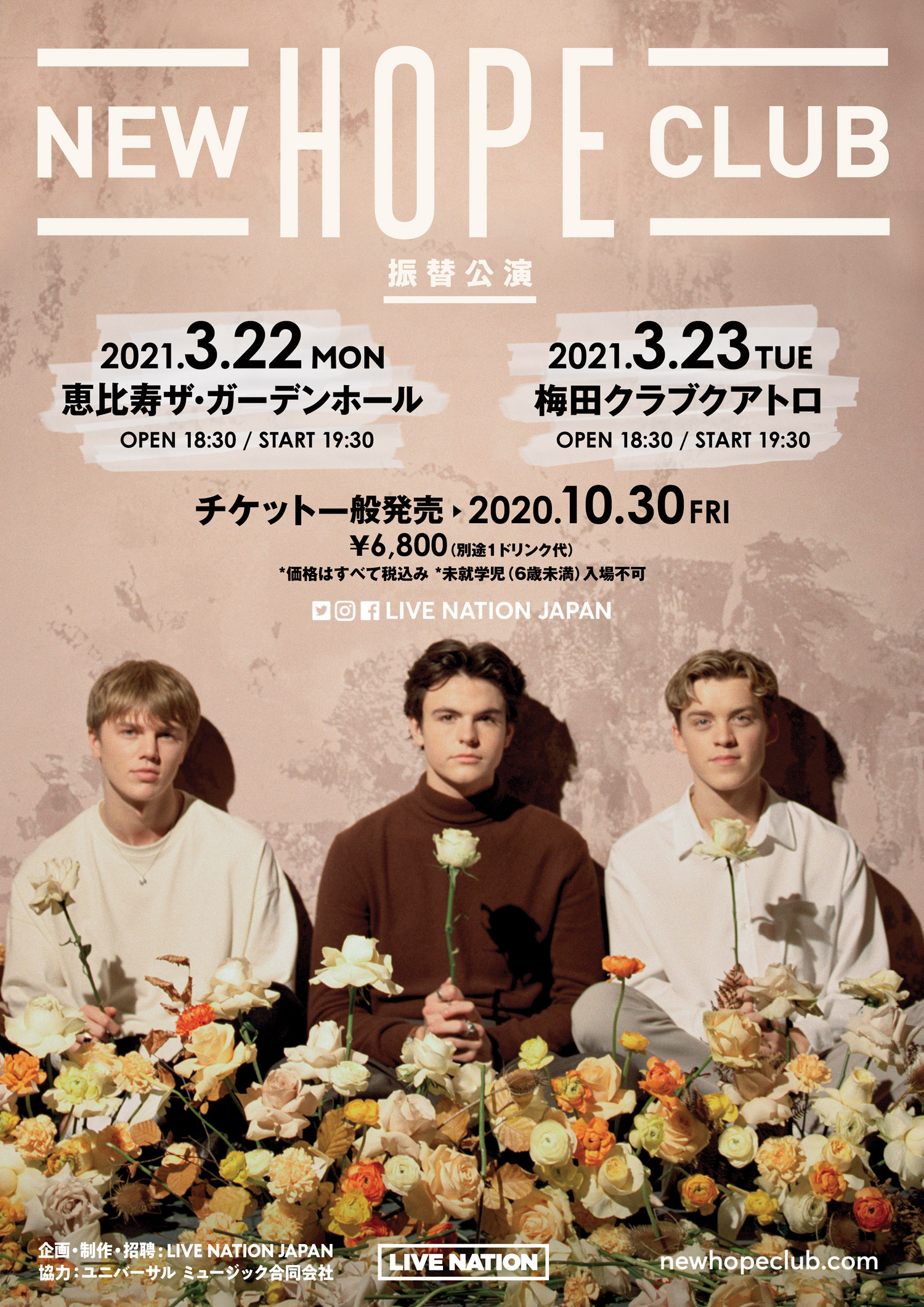 NEWS ALL TOPICS MEDIA LIVE/EVENT 2023.02.01 LIVE 約3年ぶり!一夜限りとなる来日公演決定! 2020.08.14 LIVE 来日公演、振替公演/チケット払い戻しのお知らせ 2020.02.12 LIVE ニュー・ホープ・クラブ ジャパン・ツアー開催決定!→中止になりました。 2019.09.02 LIVE 初の単独来日公演決定!
