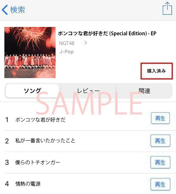 「ポンコツな君が好きだ」(Special Edition)のiTunesでの購入画面で「\1,019」の表記が「購入済み」もしくは「ダウンロード済み」となっているスクリーンショットが対象となります。