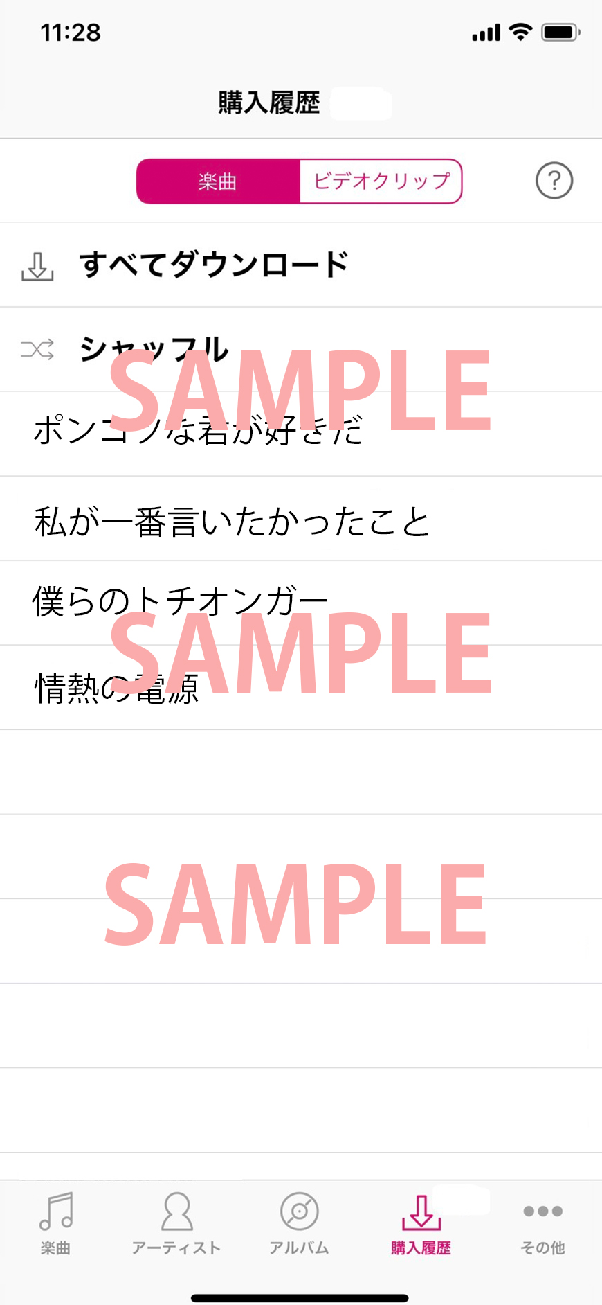レコチョク アプリ(Androidの場合)、レコチョクplus+プレイヤー(iPhoneの場合)での収録曲4曲が載っている購入履歴画面のスクリーンショットが対象となります。