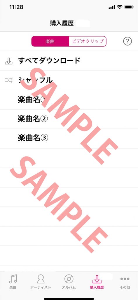 レコチョク アプリ(Androidの場合)、レコチョクplus+プレイヤー(iPhoneの場合)での収録曲6曲が載っている購入履歴画面のスクリーンショットが対象となります。