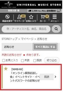 UNIVERSAL MUSIC STOREログイン後の【マイページ】内、【お知らせ】ページにてご確認いただけます。