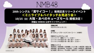 NMB48の28thシングル『渚サイコー!』の発売を記念して、10月15日(日)大阪・あべのキューズモール「スカイコート」にてリリースイベントの開催が決定いたしました!