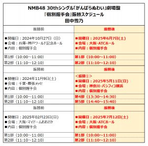 NMB48 30thシングル発売記念『がんばらぬわい』劇場盤 個別握手会におきまして、田中雪乃と坂田心咲が休業のため、全日程を欠席とさせていただきました。