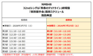 【池田典愛 振替対応のお知らせ】NMB48 32ndシングル『青春のデッドライン』劇場盤 発売記念 個別握手会/個別写メ会