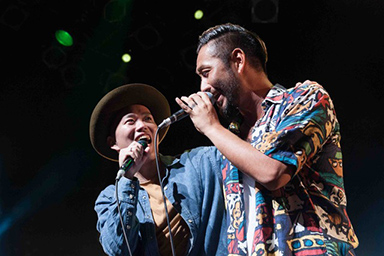 ユーモア溢れる一幕となったのは、自身の出身地・宮崎県小林市のPRソングとして、同市の高校生たちと制作した「田舎女子高生」である。NOBUの「最高のゲストを紹介しよう!」という呼び声でやって来たのは、エンターテインメント集団、Team Black Starzのメンバー3人。体操着姿で繰り広げられる楽しいパフォーマンス、その中で本格的なブレイクダンスも飛び出すと、会場からは盛大な拍手が。