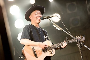 DJをバックに拳を上げて力強く歌い上げると、アコースティック・ギターを手に「今日もハレ feat.HAN-KUN」を続け、ここで「やってまいりました、渋谷ワンマンライブでーす!」と挨拶。軽快なダンスチューン「Don’t Stop The Party -DJ CHIN-NEN Remix-」で会場をヒートアップさせると、音楽人生の全てを凝縮したというベスト・アルバムの楽曲群を惜しみなく披露していく。