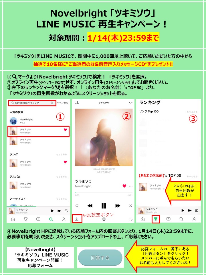 ※「LINE MUSIC」にログインし、Novelbright「ツキミソウ」を再生