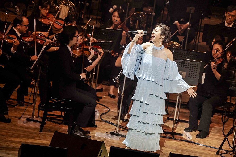 続いて、アルバムでは平原綾香が歌った『言葉にできない』をパフォーマンス。一音一音をかみしめるように歌う。アルバムとは異なる、讃美歌風のアレンジから祈りが伝わってくると思ったら、間奏で、世界で一番美しいと言われるモーツァルトの『クラリネット協奏曲イ長調』を盛り込んだと紹介される。