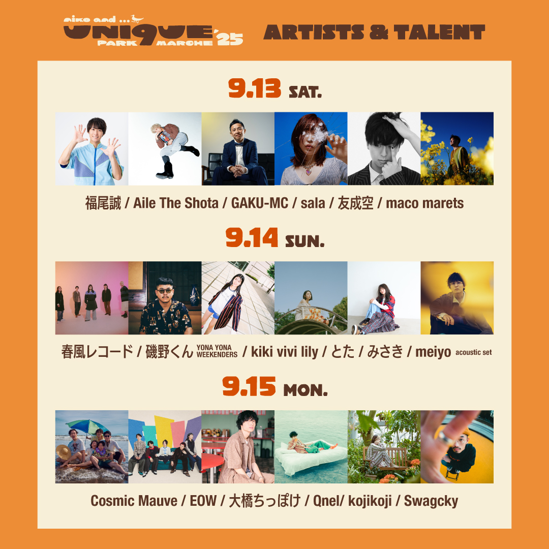 niko and … UNI9UE PARK MARCHE’25 出演決定! 2025.08.06 LIVE niko and … UNI9UE PARK MARCHE’25 日程:9/15(月・祝) 会場:等々力緑地・催し物広場 ▼オフィシャルサイト https://www.nikoand.jp/uni9ue_park_2025/
