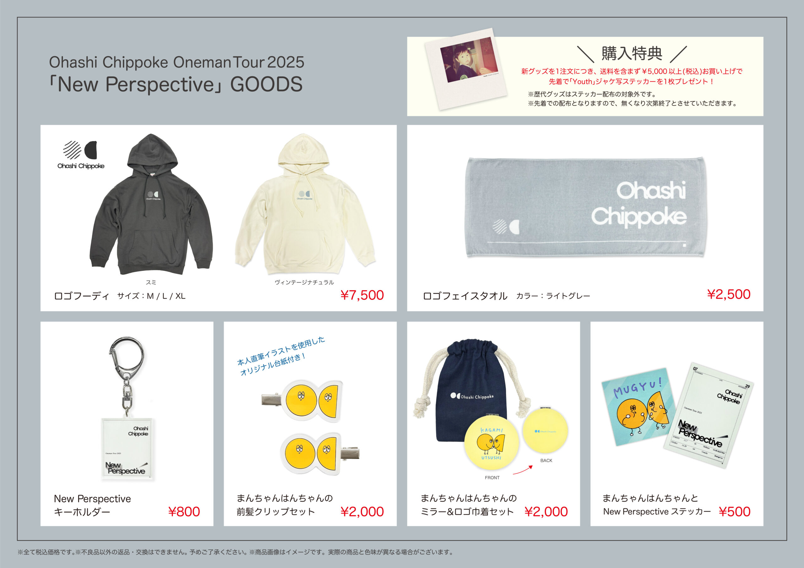 本日12月3日(水)12:00より大橋ちっぽけ ONLINE STOREにて、大橋ちっぽけワンマンツアー2025「New Perspective」のグッズを新たに販売開始しました。