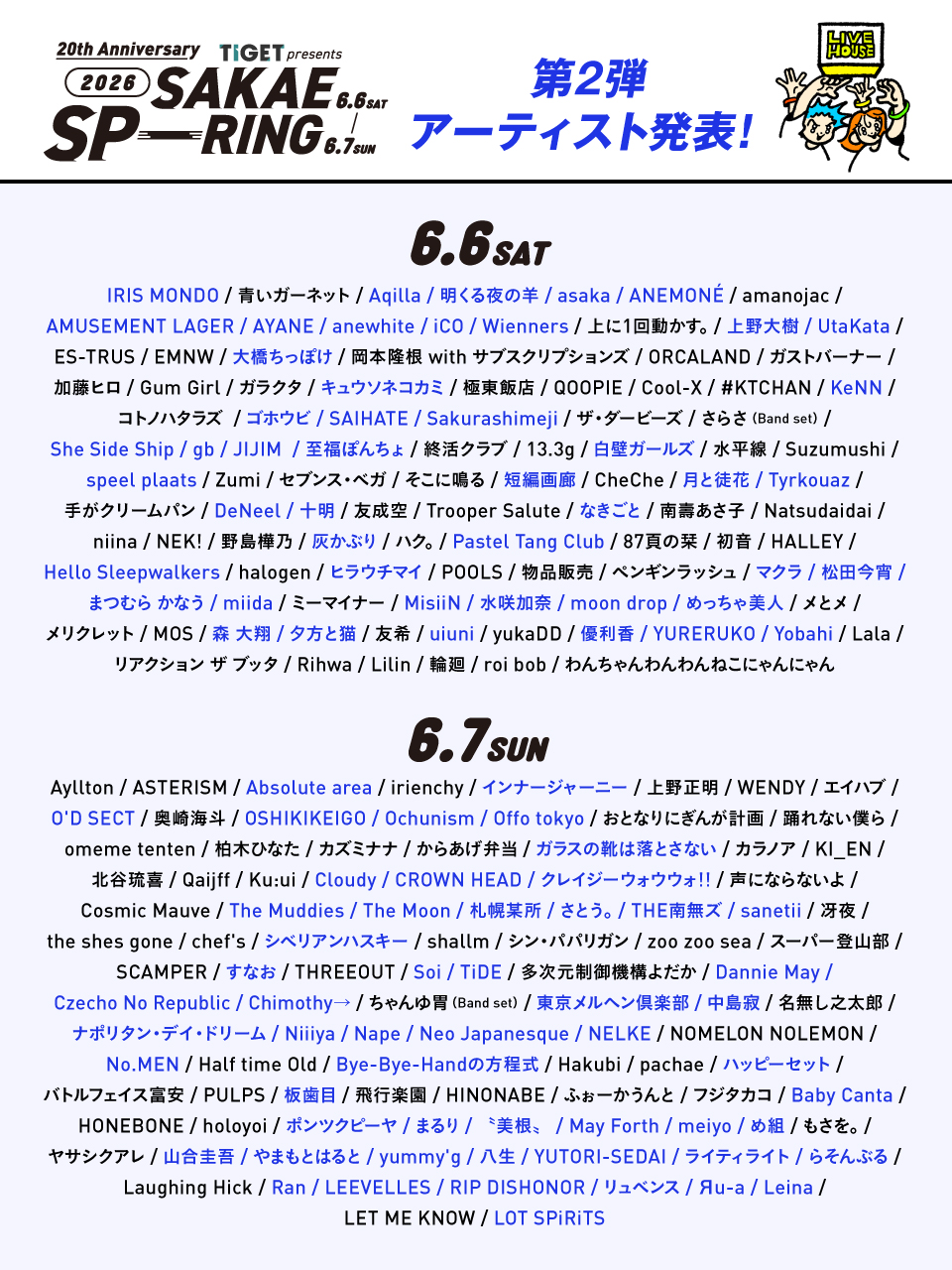 SAKAE SP-RING 2026 出演決定! 2026.04.24 LIVE TIGET presents SAKAE SP-RING 2026 日程:2026年6月6日(土) 会場:愛知・名古屋市内ライブハウス ▼オフィシャルサイト https://sakaespring.com/
