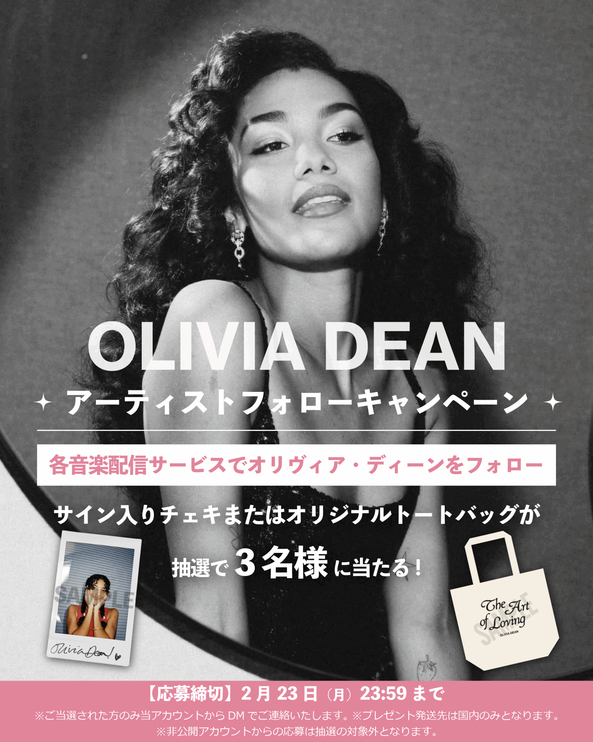 オリヴィア・ディーンのサイン入りチェキが当たる!アーティストフォローキャンペーン開催!