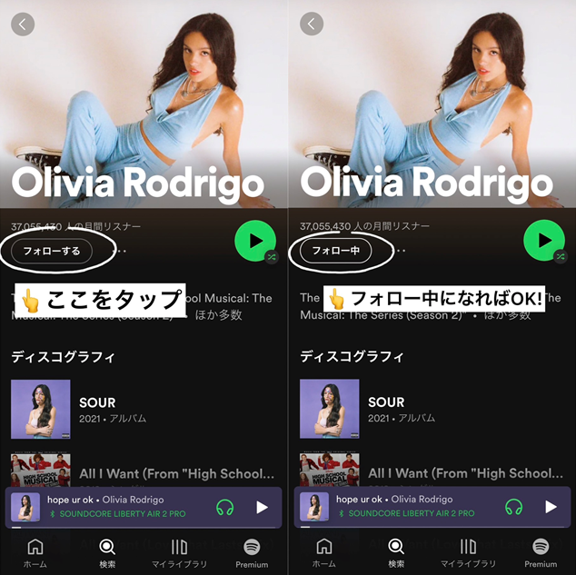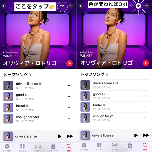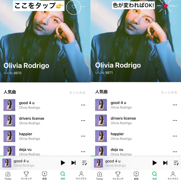 ①Spotify/Apple Music/LINE MUSICのいずれかでオリヴィア・ロドリゴをフォロー(プッシュ通知はオンにしてください)