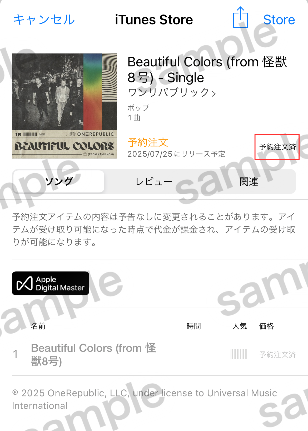① OneRepublic(ワンリパブリック)「Beautiful Colors (from 怪獣8号)」をiTunesでプレオーダー(予約注文)