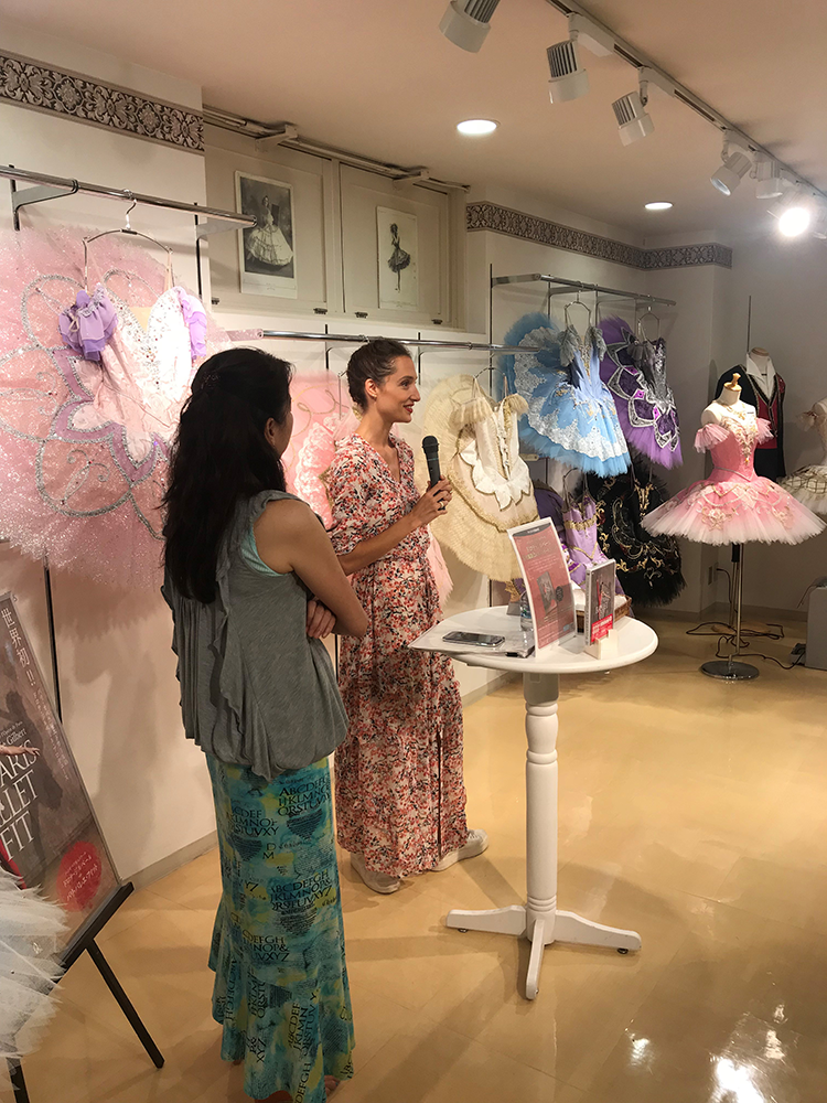 前日28日(土)の夜、台風の影響で約4時間送れて日本に到着したドロテ。深夜にホテルに到着した彼女ですが、スタッフの心配をよそに逆に飛行機でゆっくり休めたと元気いっぱい。翌29日は朝からDVDのためのキャンペーンをスタートさせ、夕方にはチャコット渋谷本店でのリリースイベントでファンに元気な姿を見せてくれました。