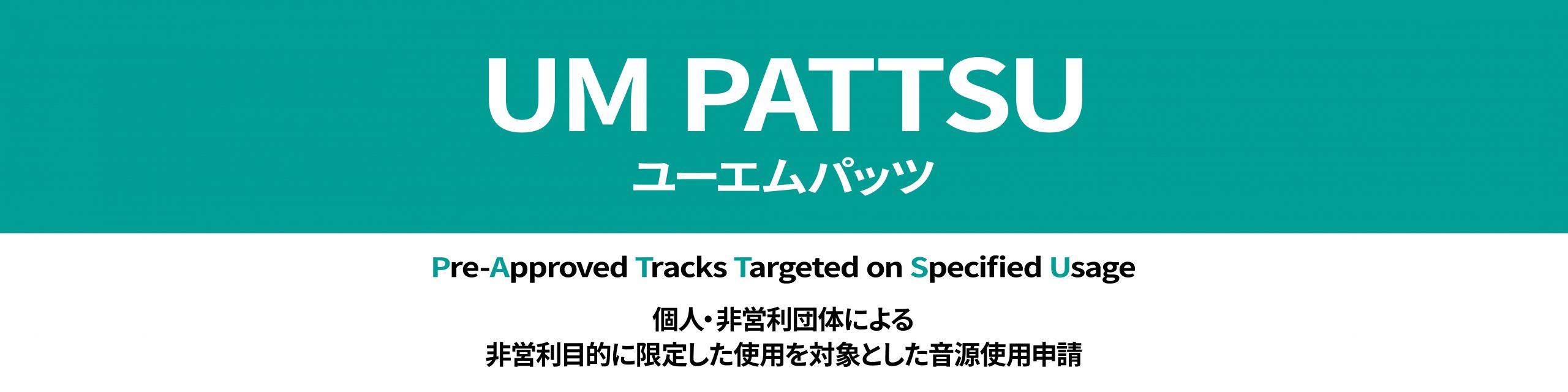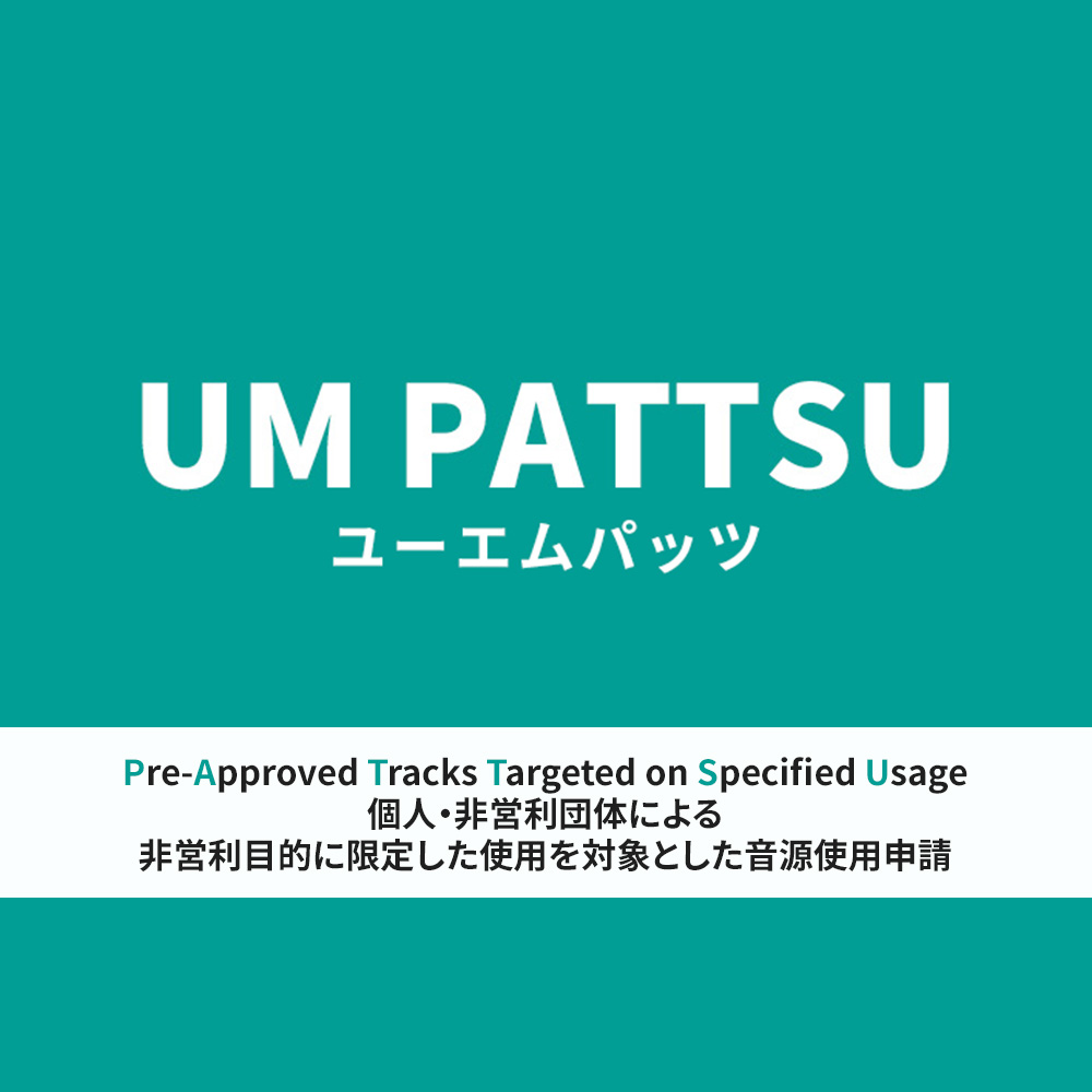 ご自身のご使用内容がUM PATTSU対象であることをご確認のうえ、UM PATTSU申請はこちらより、ご使用楽曲をご選択のうえ、ご申請下さい。
