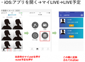 ③WithLIVEのアプリを開き、予約が反映されているか確認してください