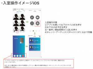 LIVE予約画面をタップし→チケットに表示されている「入室」をタップして待機ください。