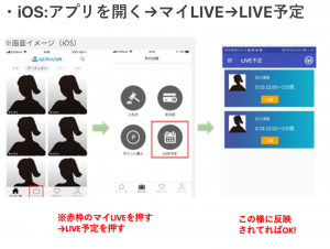 ios:アプリを開く→マイLIVE→LIVE予定