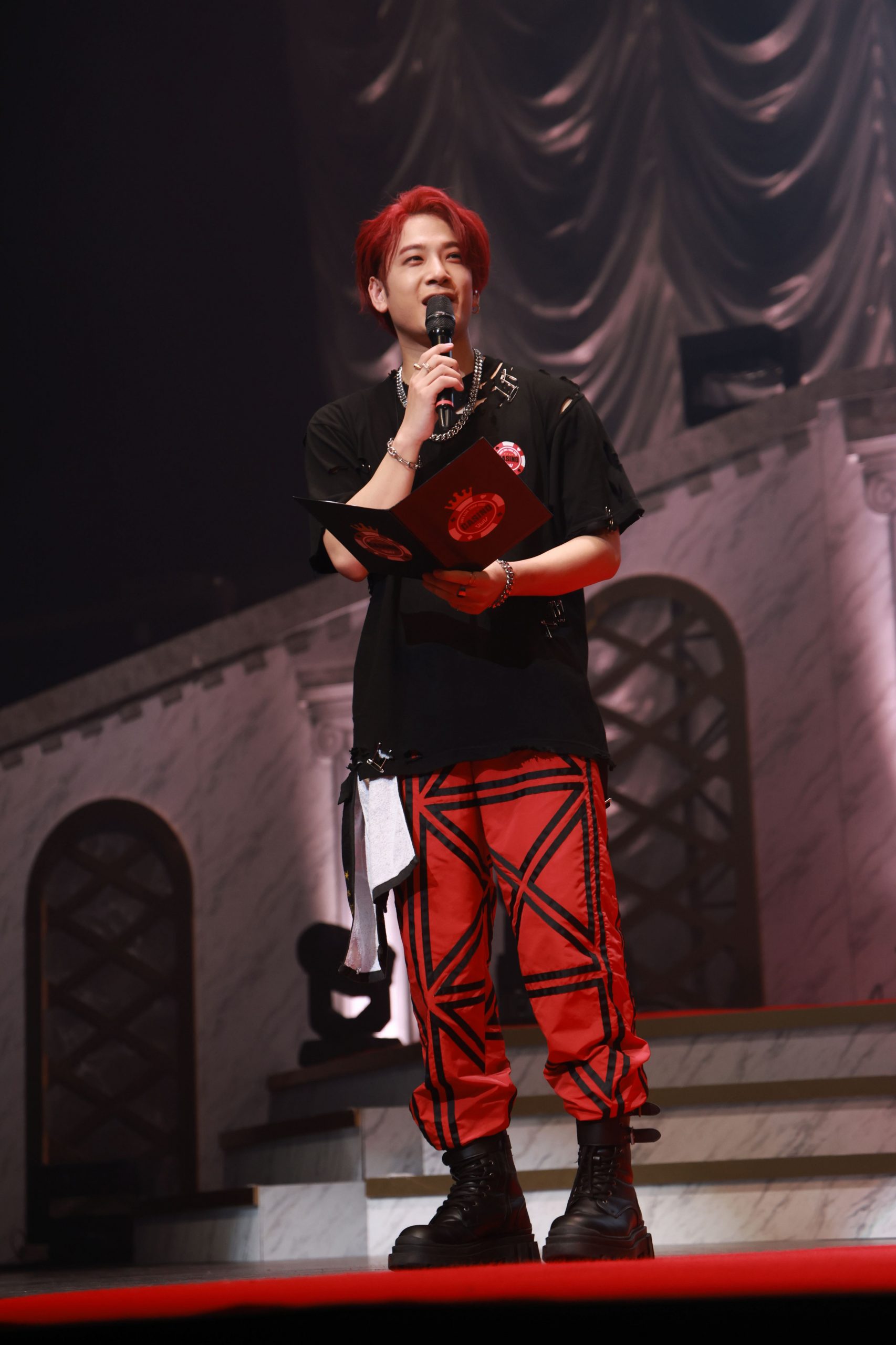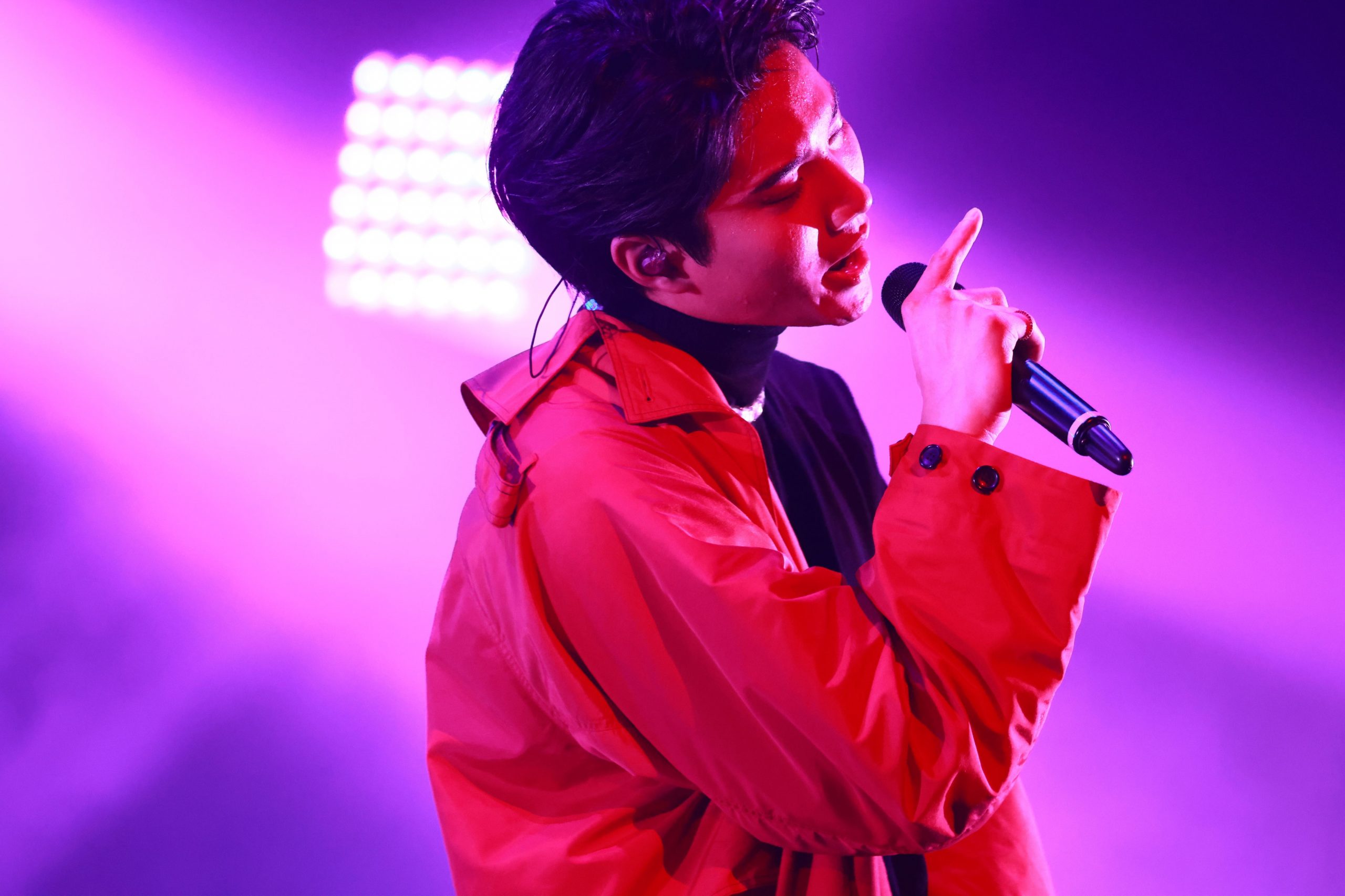 続いて中川のソロへ。羽織った真っ赤なロングトレンチコートの裾を軽やかに揺らしながら、ステージ前方のレッドカーペットを闊歩し、得意のラップを展開する。クールな曲の雰囲気に合わせて鋭い眼差しをキープしながらも、客席の端から端まで細やかに目配せを欠かさずにいた。