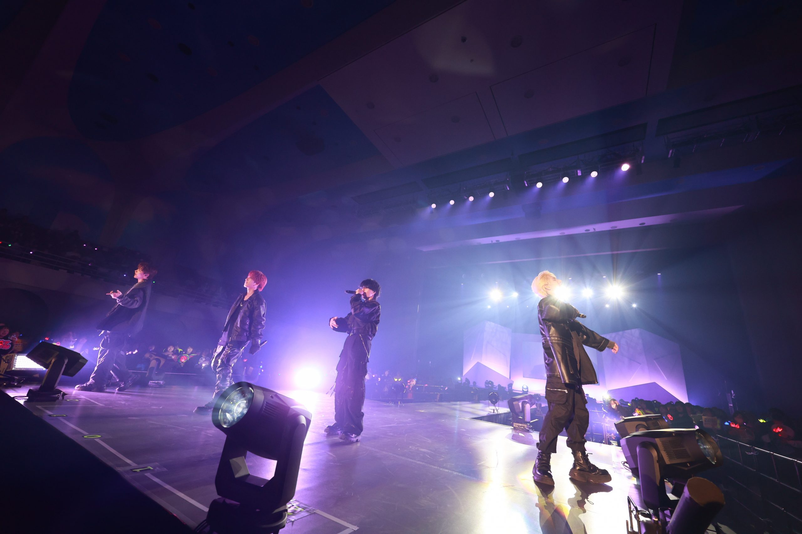定刻を過ぎると、本ツアーのコンセプトムービーが流れた後、ステージに白いセットアップを着用した4人が現れる。本編は大人の貫禄で魅せる「Last scene」からスタート。グループとしてもこれまでのカラーと異なる新たなラブソングで、客席のペンライトがゆったりと揺れる。