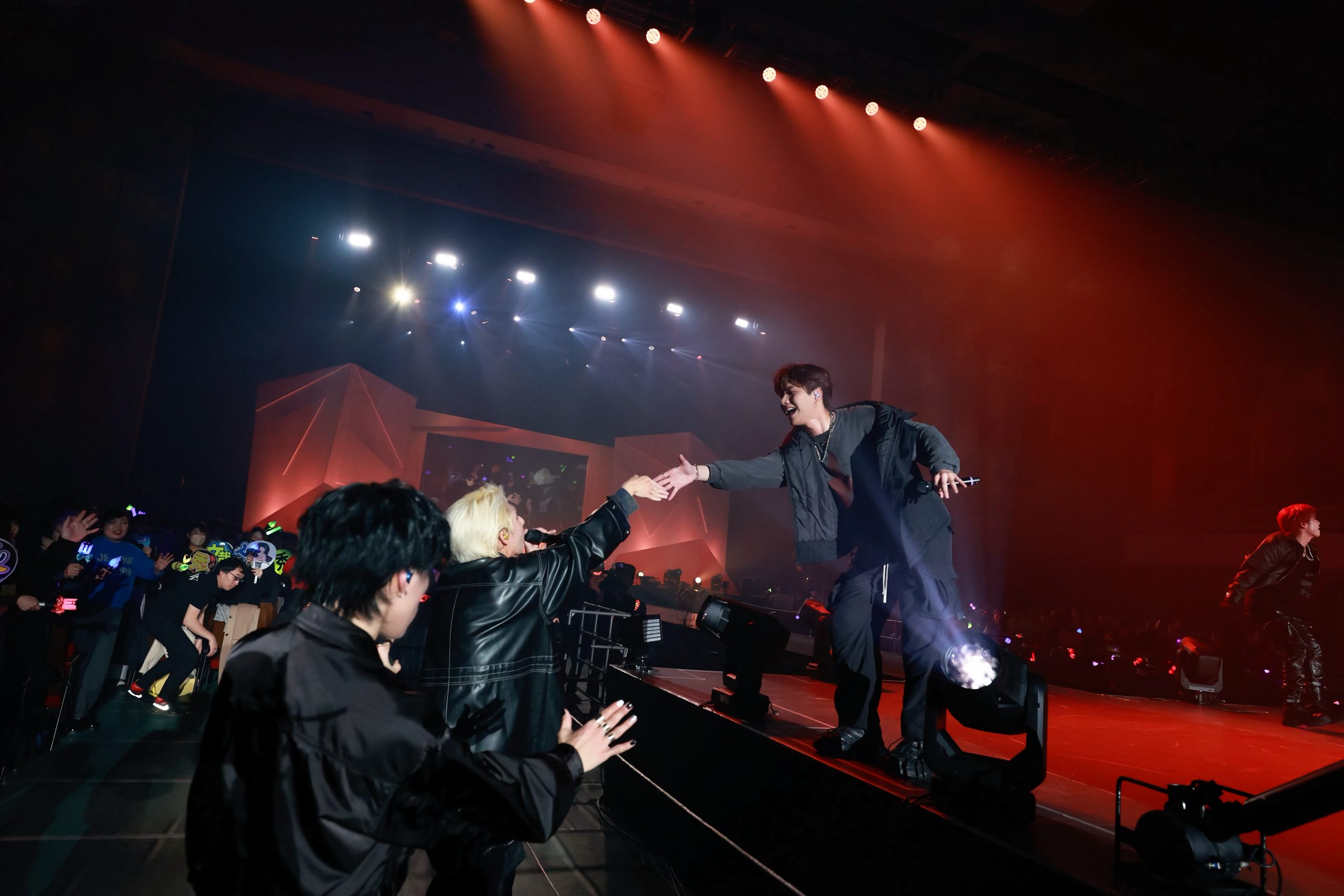 廃墟の洋館を舞台にしたイメージムービーが流れた後、ステージ中央のヴィジョンが幕のように引き上がると、真っ赤な照明を浴びながら4人が登場。これまでの白いジャケットスタイルとは打って変わって、黒を貴重とした衣装を身に纏っている。メンバーの伸びやかな声が印象的な「Caution」、浦野の透き通るような高音がスパイスとなる「Na Na Na」、デビュー曲「UBA UBA」のリミックスバージョンを連続でパフォーマンス。プライベートでは東京マラソンを完走し、最近「SASUKE 2023」にも出場を果たした佐野は、後半に差し掛かってもまだまだ体力が有り余っているようにも見えた。