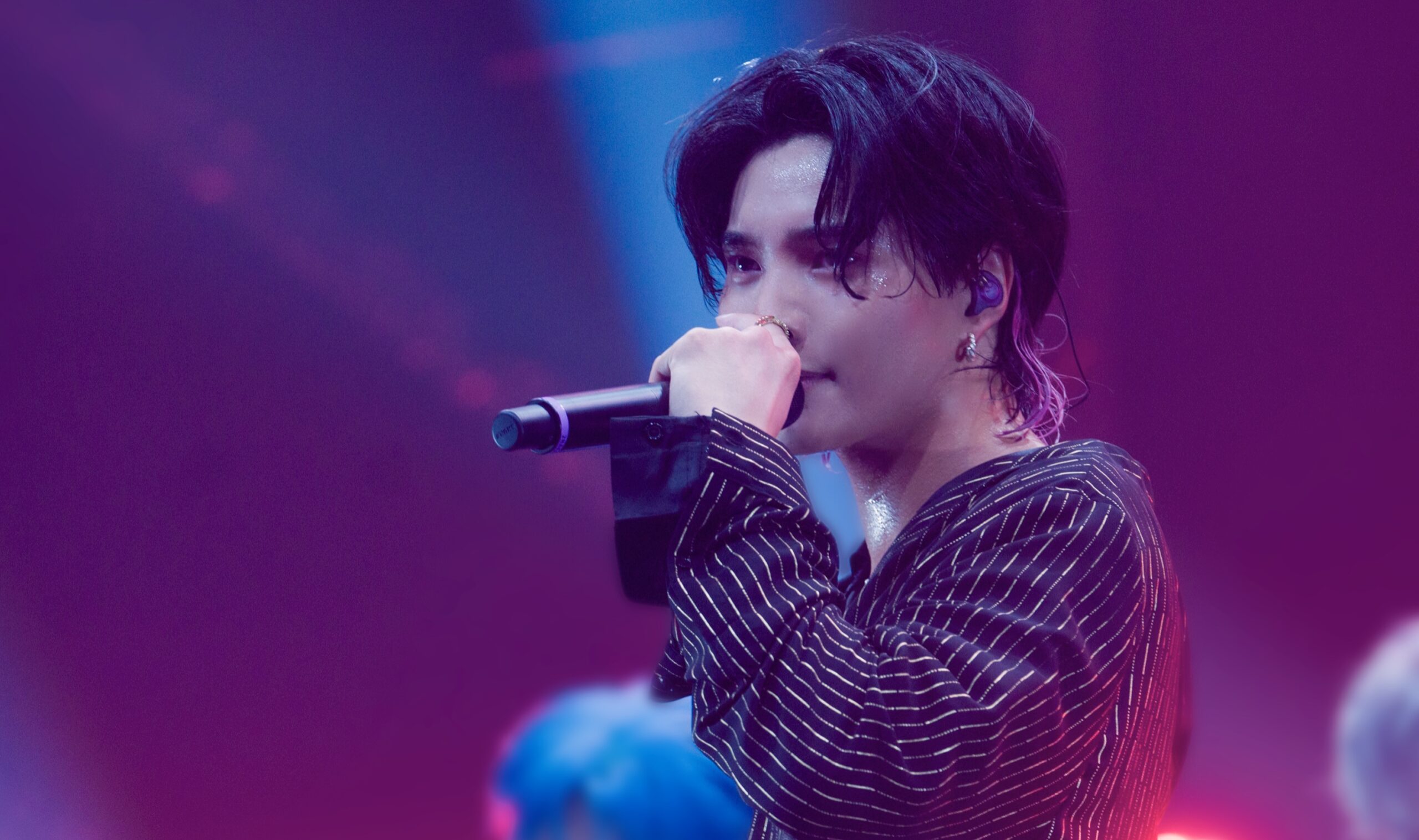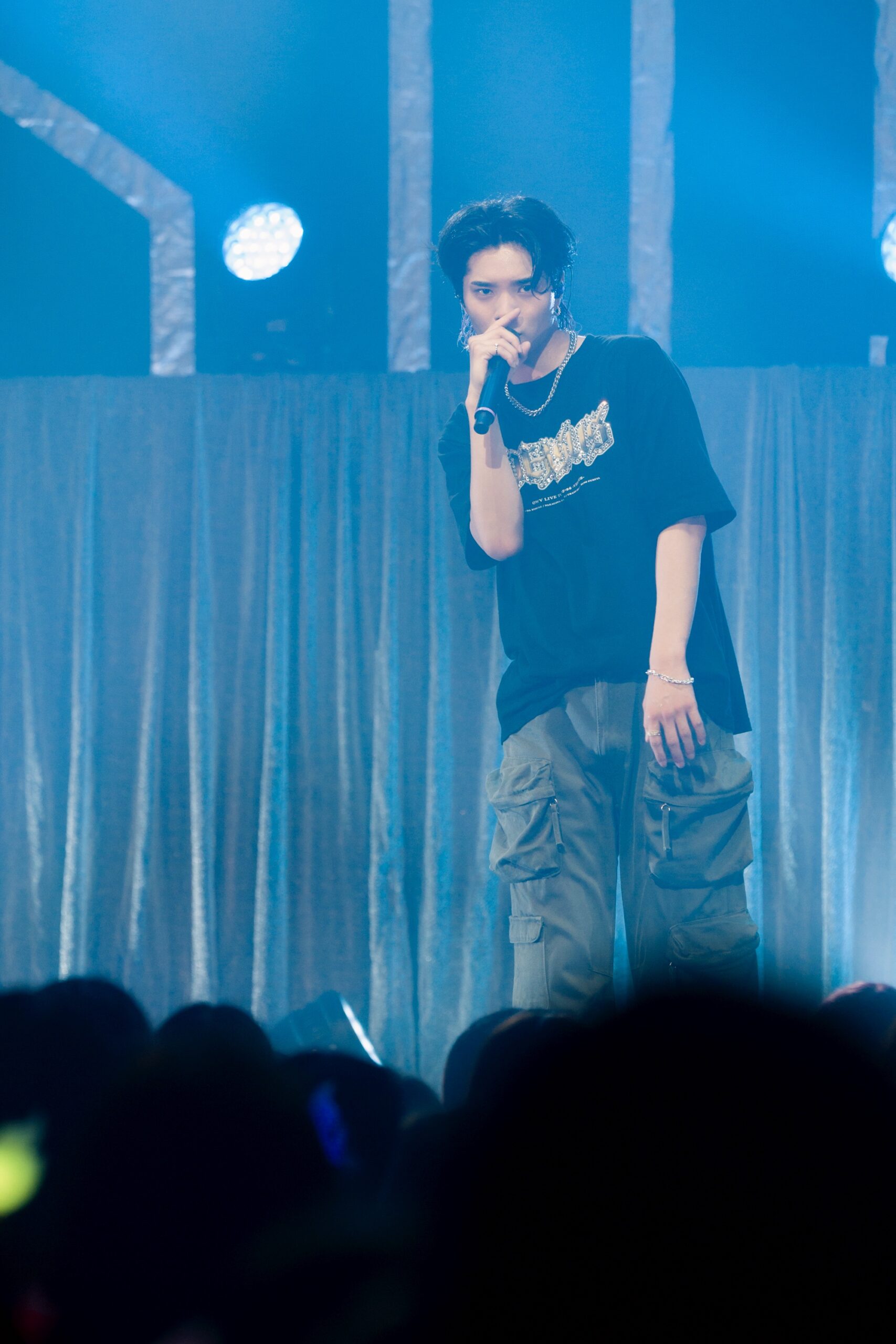 ほんわかした雰囲気のMCパートを経て、空気は一転。2nd singleの「Ready Set Go」から、大人っぽいダンスナンバー「Na Na Na」を披露したかと思えば、続いてステージが暗転。メインボーカルの浦野がひとり姿を現し、しっとりと「Scattered」の歌い出しをアカペラで響かせた。これも2021年に豊洲PITで行われた公演と同じ演出だ。