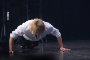 ラストは浦野との“腕立て対決”が開始。実は3年ほど前の浦野は腕立て伏せが2,3回ほどしかできず悔しい想いをしていたんだとか。これには中川も「普通に考えたら本田くんが勝ちそうよな」と期待を感じるも、キレイに腕立て伏せを何回もクリアしていく浦野に対し、辛そうに腕立てをし続ける本田は14回でギブアップ! 浦野が佐野のように「俺、まだ筋肉使ってないよ」と言うと本田はうつ伏せになり「え~ん!」と泣く仕草を見せQWVは大爆笑。本田は「腕も上がらないですし、足も震えていますし…」と弱弱しく言った後、「でも、これで王舞学園は安心だよ!」と卒業生らしいクールなコメントを残し大きな拍手で包まれた。