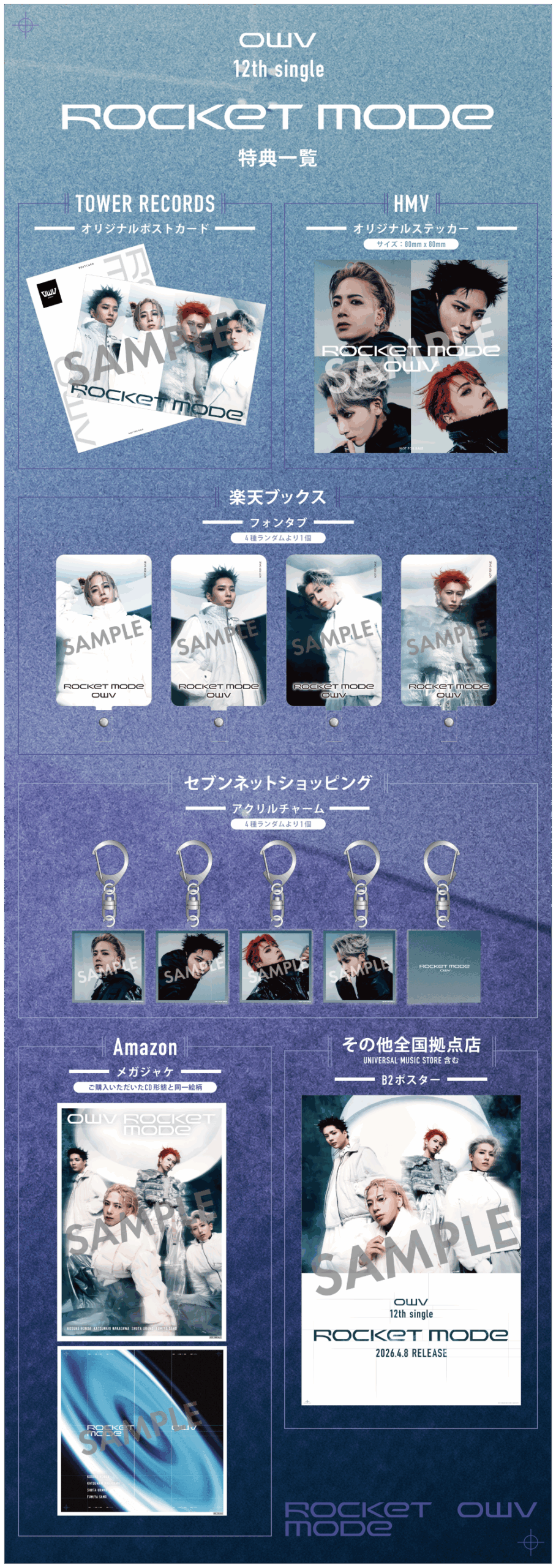 2026年4月8日(水)発売 OWV 12th single『ROCKET MODE』の店舗別特典絵柄が決定いたしました!