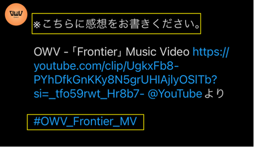 ハッシュタグ「#OWV_Frontier_MV」と、感想をいれてXにシェアしてください。