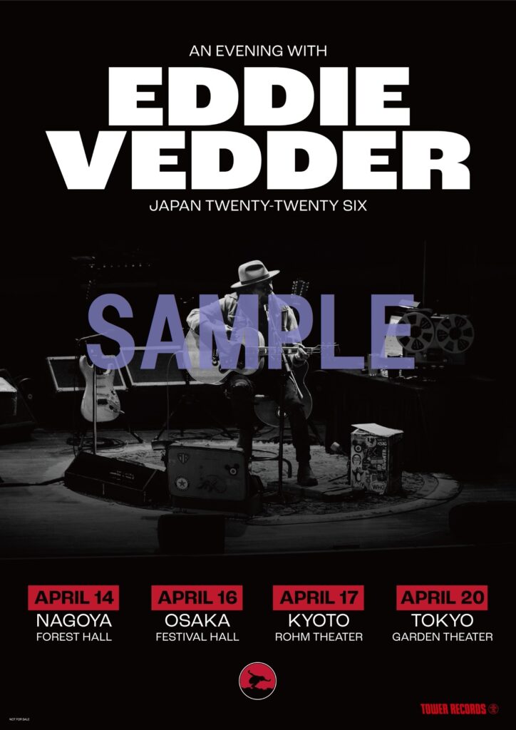 パール・ジャムのフロントマンであるエディ・ヴェダーが、キャリア初となるソロ来日公演を2026年4月14日から名古屋・大阪・京都・東京にて計4公演を開催!