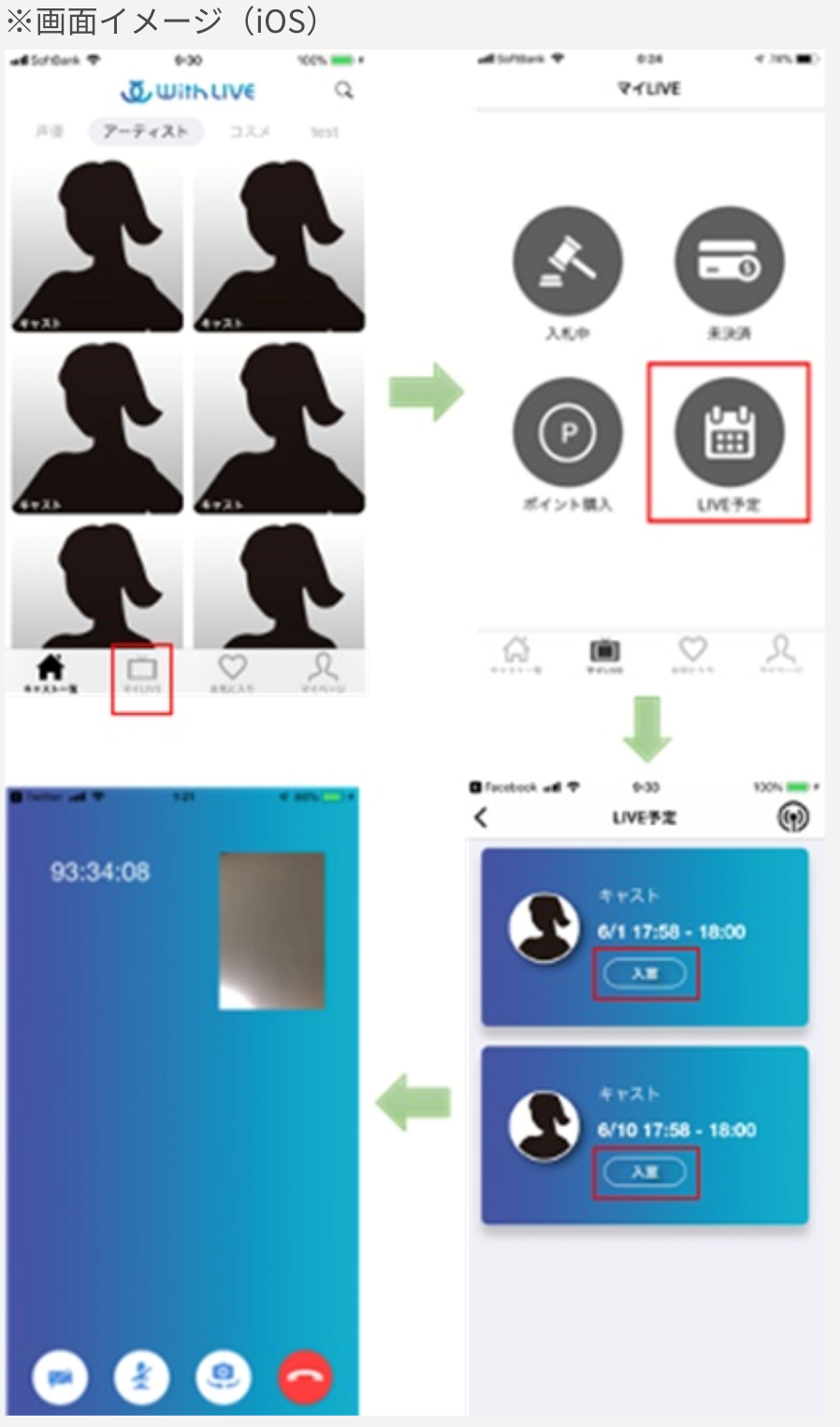 ※当日は「WithLIVE」の会員登録・アプリダウンロード・ログインが完了している状態で、「WithLIVE」アプリの「LIVE予定」から「入室」してメンバーと接続されるのをお待ちください。