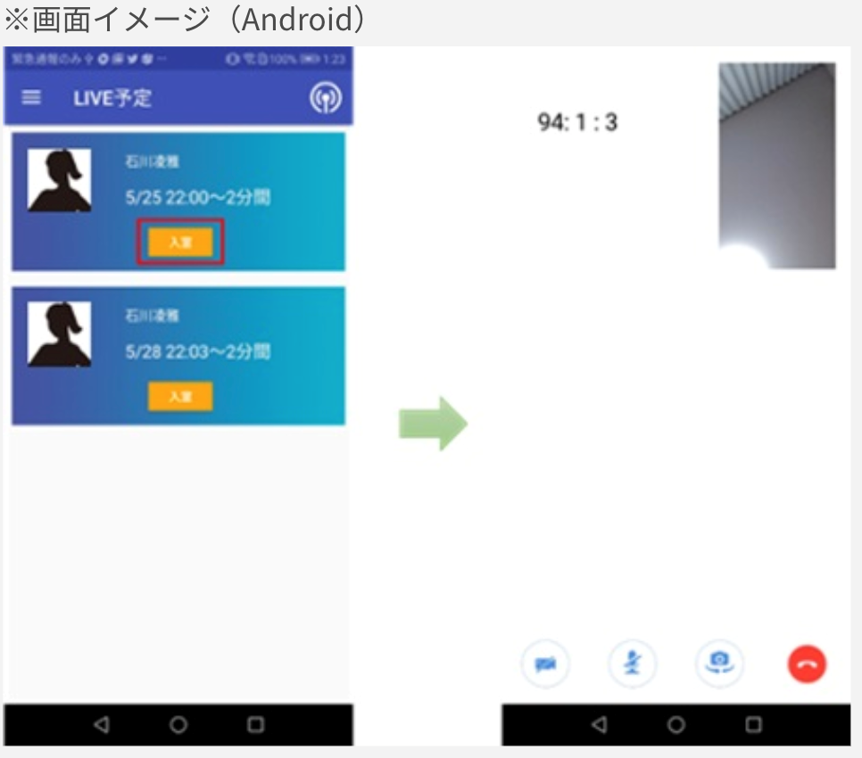 あらかじめ早めにアプリのLIVE予定→時間ごとの枠に「入室」しスタンバイしてください。